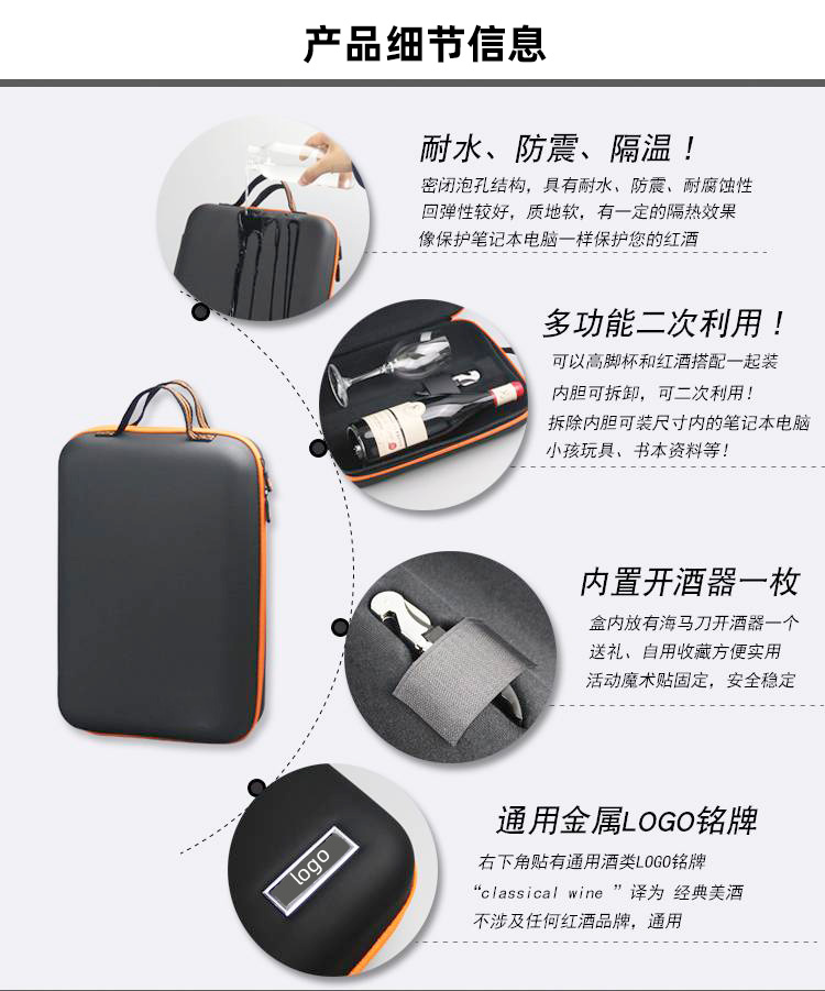 廠家批發(fā)EVA紅酒包裝盒抗壓拉鏈酒瓶盒抗震EVA紅酒盒收納包